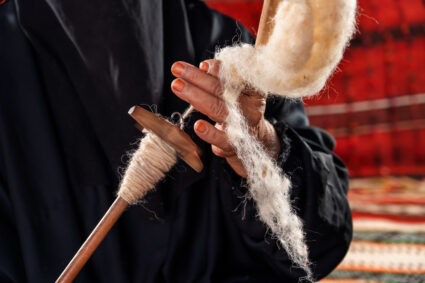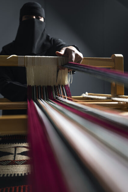 The Traditional Weaving (Sadu) Apprenticeship Program is considered one of the most important programs that serves the handicrafts sector and preserves the heritage of traditional weaving in the Kingdom of Saudi Arabia. The program delivers essential knowledge and skills in the Sadu craft, through which the apprentice learns the basics, history, tools, and methods of preparing and dyeing the raw material. Furthermore, the apprentice practices traditional weaving and knitting skills, in preparation for developing functional Sadu products. All training is conducted under the supervision and guidance of specialists and expert craftsmen who practice the craft in its authentic form.