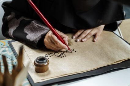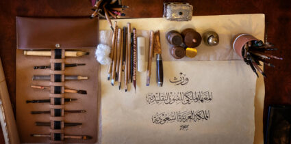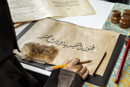 The program offers a combined theoretical and practical journey, where participants will explore the evolution of Arabic calligraphy through history, study key historical models, and then focus on mastering the Saudi Diwani script through step-by-step training on letters and phrases. The program also includes a final project in which each participant creates a calligraphic panel that reflects their artistic and creative skills.