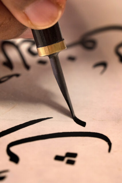 - Design balanced calligraphic phrases using the aesthetic compositions of the Diwani script.