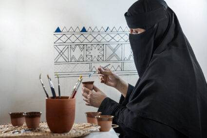يُعد فن القط العسيري من أبرز الفنون التقليدية في المملكة، ويمثل أحد أشكال التعبير الجداري الذي يجسد الهوية الثقافية لمنطقة عسير، وقد أُدرج ضمن قائمة التراث الثقافي غير المادي في اليونسكو.